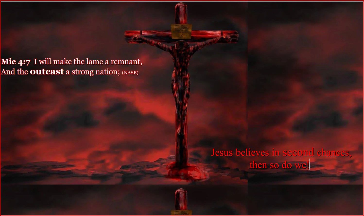 The OutCast Nation began as an outreach for those who don't feel welcomed at the traditional Church. And, for those who keep messing-up over and over again like me. God is the God of second, third, fourth...chances. I myself don't really feel welcomed in some Churches.